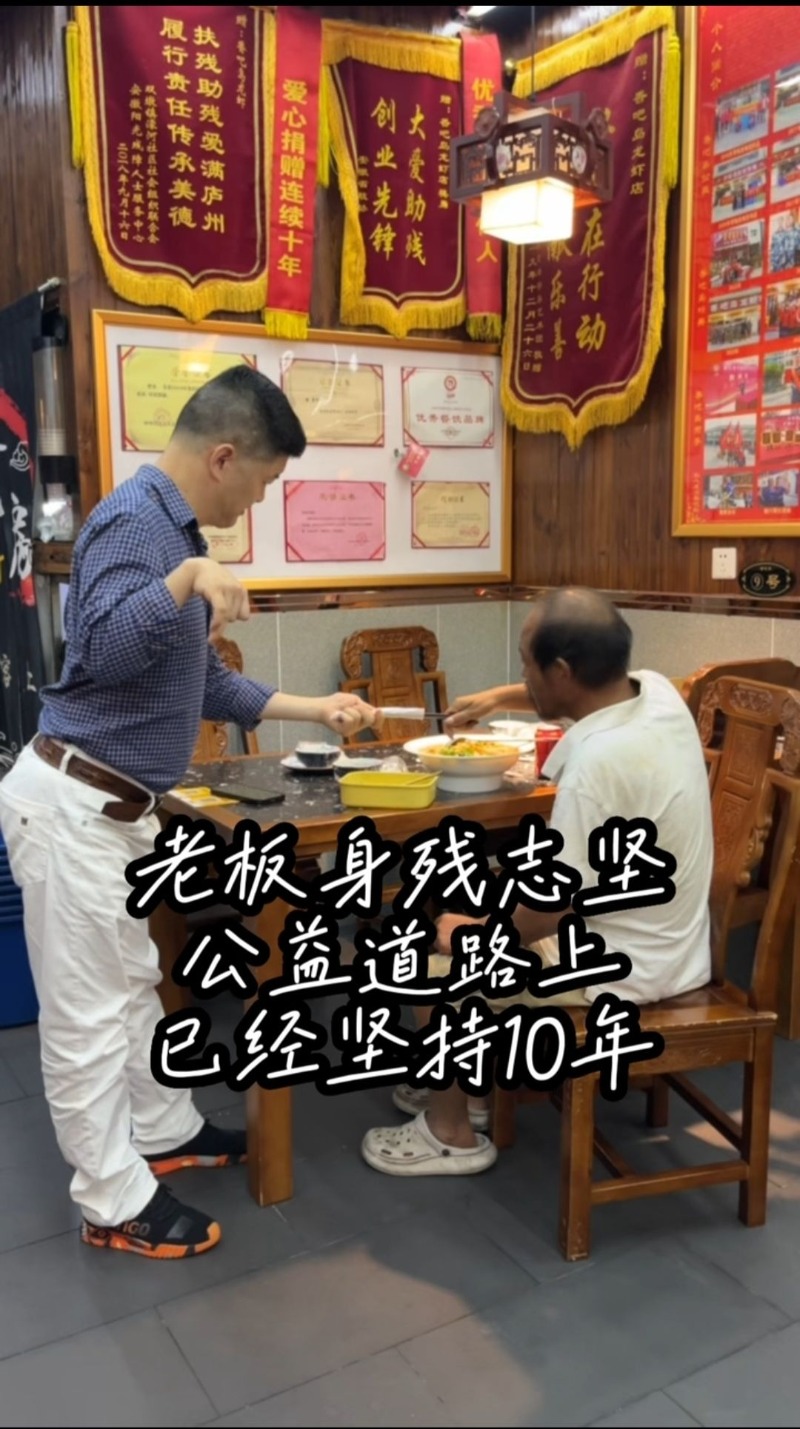 每年的8月11日,是全国肢残人活动日,夫妻俩和员工都会在店门口举行物资捐赠,免费分发给保安、环卫工人、残障人士等需要关怀的群体,将温暖传递给身边每一个需要帮助的人。