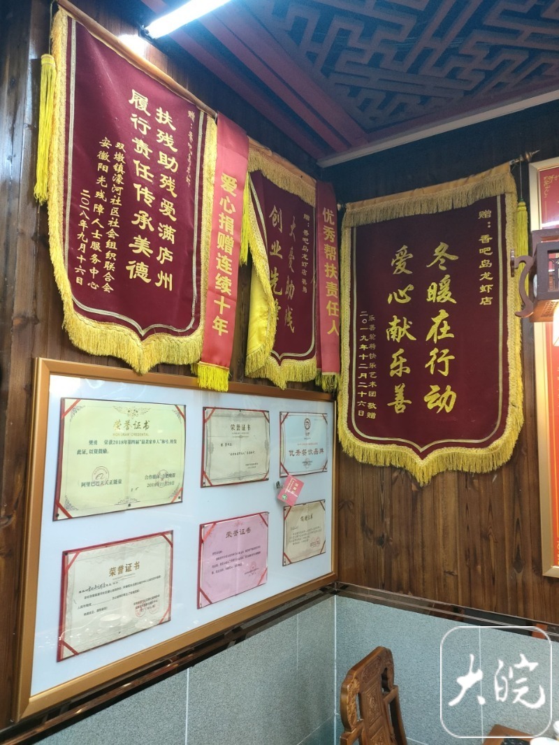 尤为难得的是,樊勇致富不忘家乡人,他先后安排20多个家乡人进入龙虾店学习餐饮技术。2018年,霍邱县白莲乡政府表彰樊勇为“农村致富带头人”。