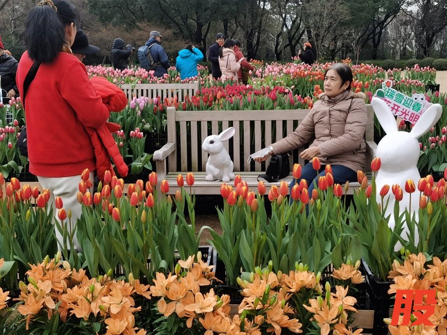 记者在现场看到,这个花市打破传统,花商不再是主角,将复兴公园的核心区域让位给冬季罕见的郁金香花海景观,鲜花年货市集则围聚在旁。许多市民游客打卡拍照后,被激发出强烈的“顺手带点鲜花和年货回家”的想法。花市主办方“顺势”推出郁金香采摘区,29.9元即可自选10枝,周末高峰期排队时长一度超过一个半小时。如此热度下,最近采摘区又上新了重瓣百合“小蜜蜂”,花头密集、好养皮实,价格同样亲民,10元两枝。