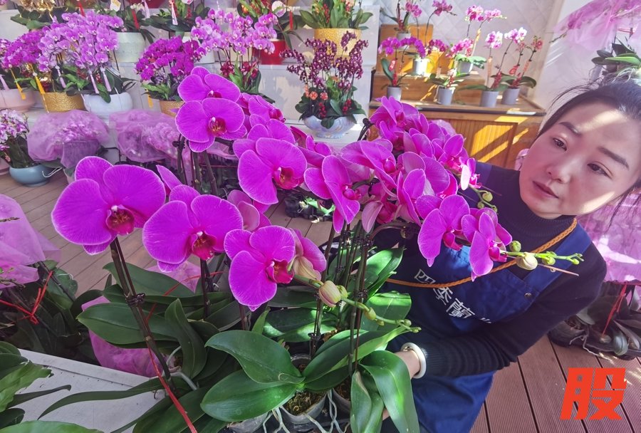 王玉君打理新到货的蝴蝶兰。 陈玺撼摄