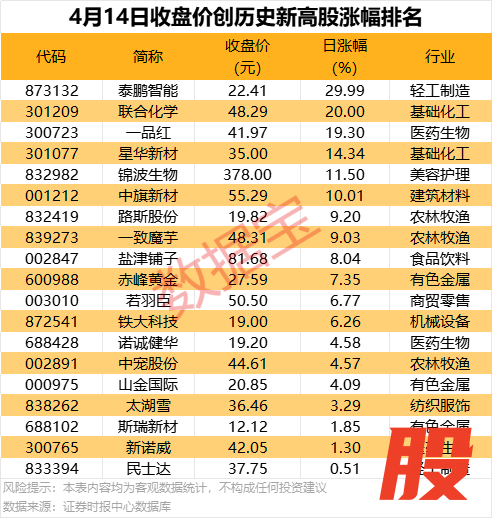 19股收盘价创历史新高 多只个股不断突破新高19股收盘价创历史新高 多只个股不断突破新高