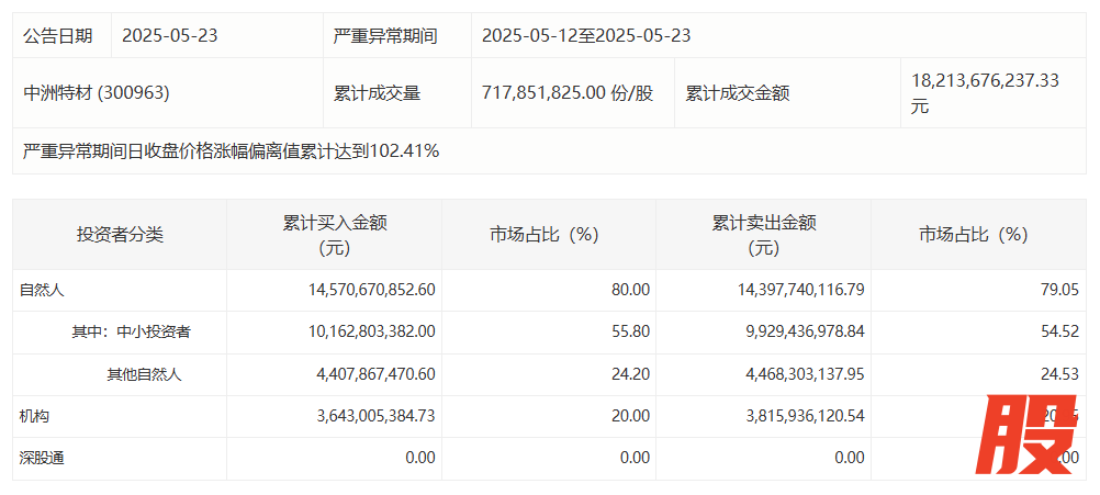 深交所:中洲特材10个交易日累涨102.3% 自然人买入占比达80%深交所:中洲特材10个交易日累涨102.3% 自然人买入占比达80%